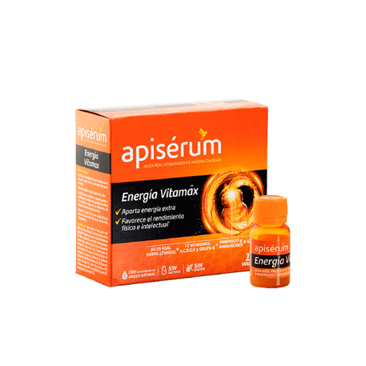 Apiserum és un complement alimentari en format de 18 vials bebibles, formulat a base de gelea reial, vitamines del grup B i altres ingredients naturals que ajuden a millorar el rendiment físic i mental. L'objectiu és combatre el cansament, reforçar el sistema immunològic i augmentar l'energia de manera natural. És ideal per a èpoques de fatiga, estrès o canvis d'estació en què el cos necessita una aportació extra.