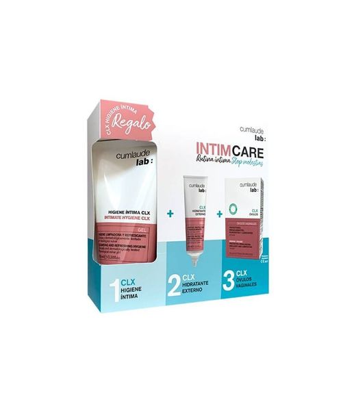 Cumlaude Intimcare CLX Pack és un conjunt integral de cura íntima femení que combina productes dissenyats per mantenir la higiene, hidratació i salut vaginal. Aquest pack inclou un gel d'higiene íntima, un hidratant vaginal i òvuls que ajuden a prevenir i tractar molèsties, equilibrar la flora vaginal i millorar el benestar íntim.